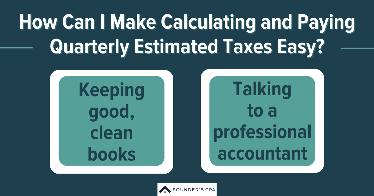 If you’re curious about straightening out your quarterly estimated taxes, Founder’s can help. Contact us to get started!