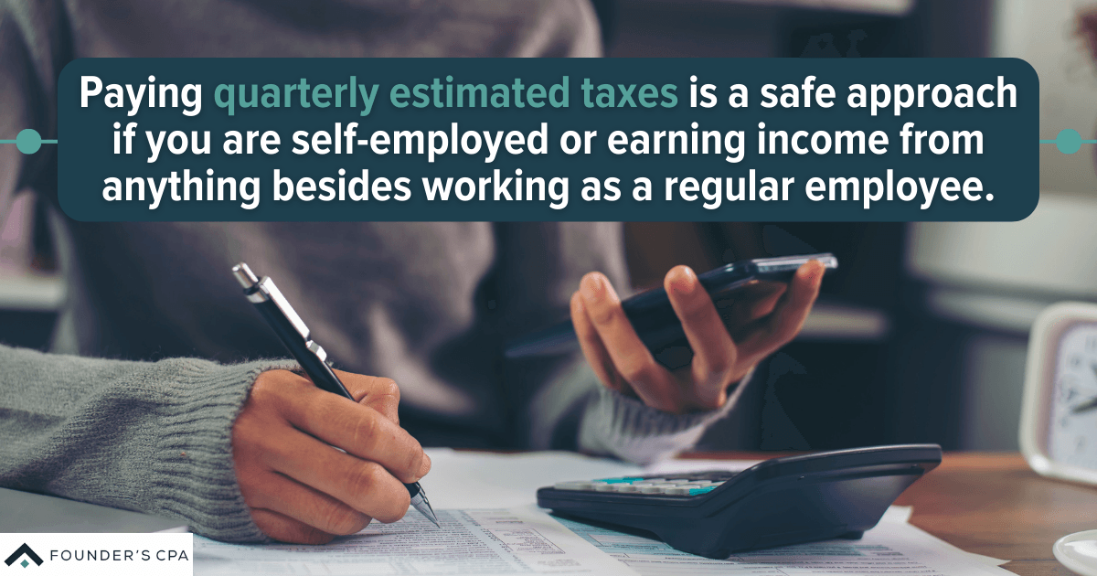 Our team at Founder’s CPA can help you with this, but for now, here are a few things you should know about quarterly estimated taxes.